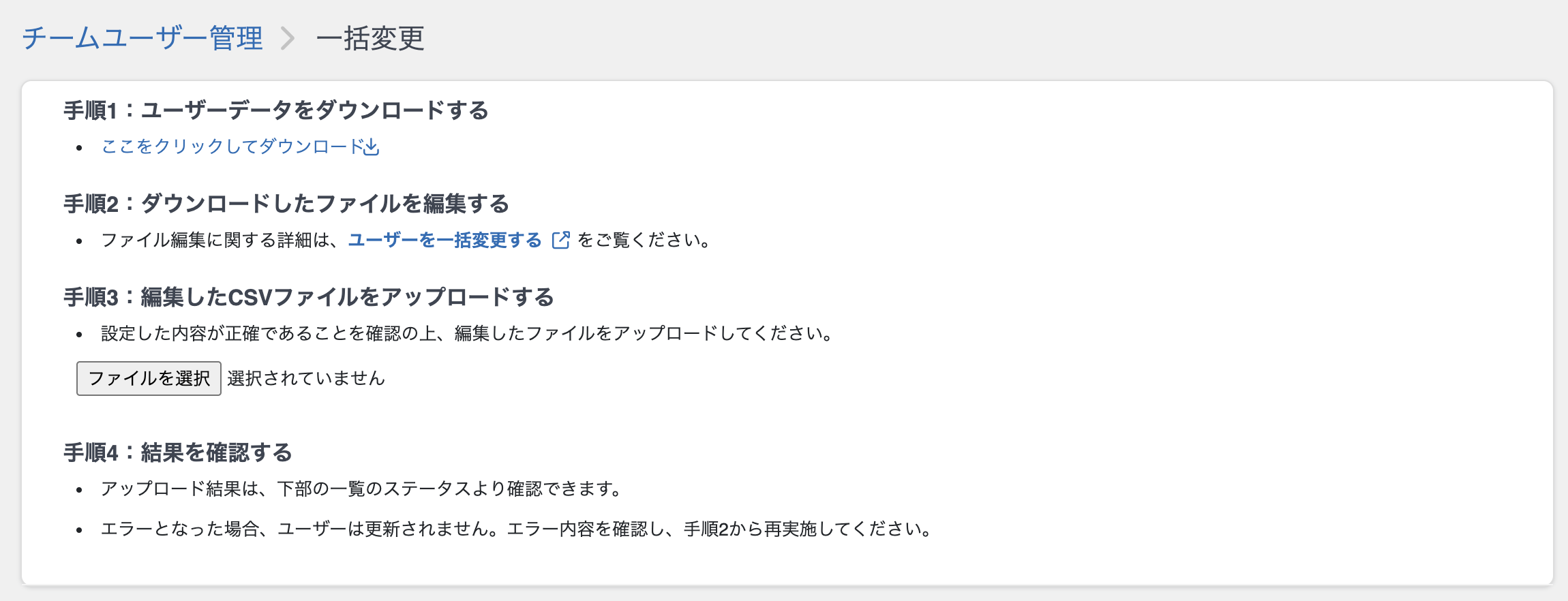 CSVファイルでユーザーの情報を一括変更する