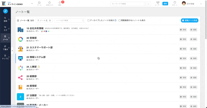 関連ヘルプ:チーム内のノート情報を確認する