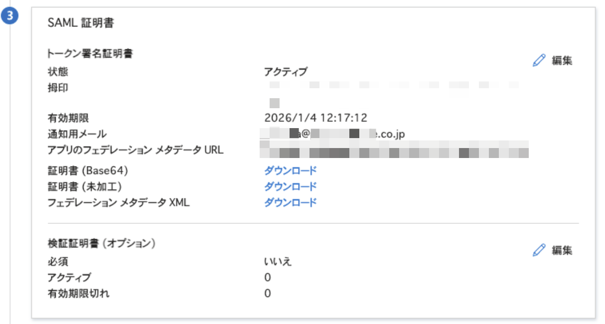 - [フェデレーション メタデータXML]の[ダウンロード]をクリックします。