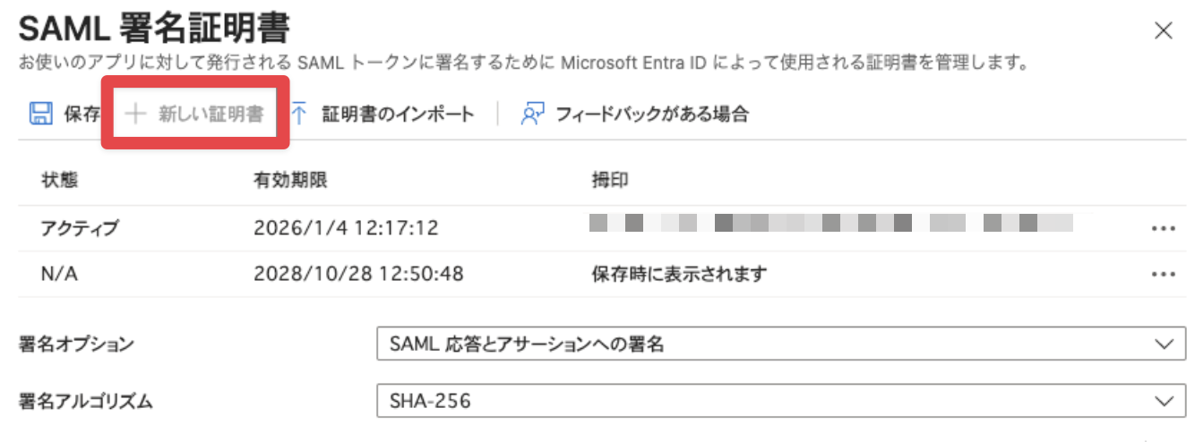 Microsoft Entra IDの証明書を新しい証明書に入れ替える