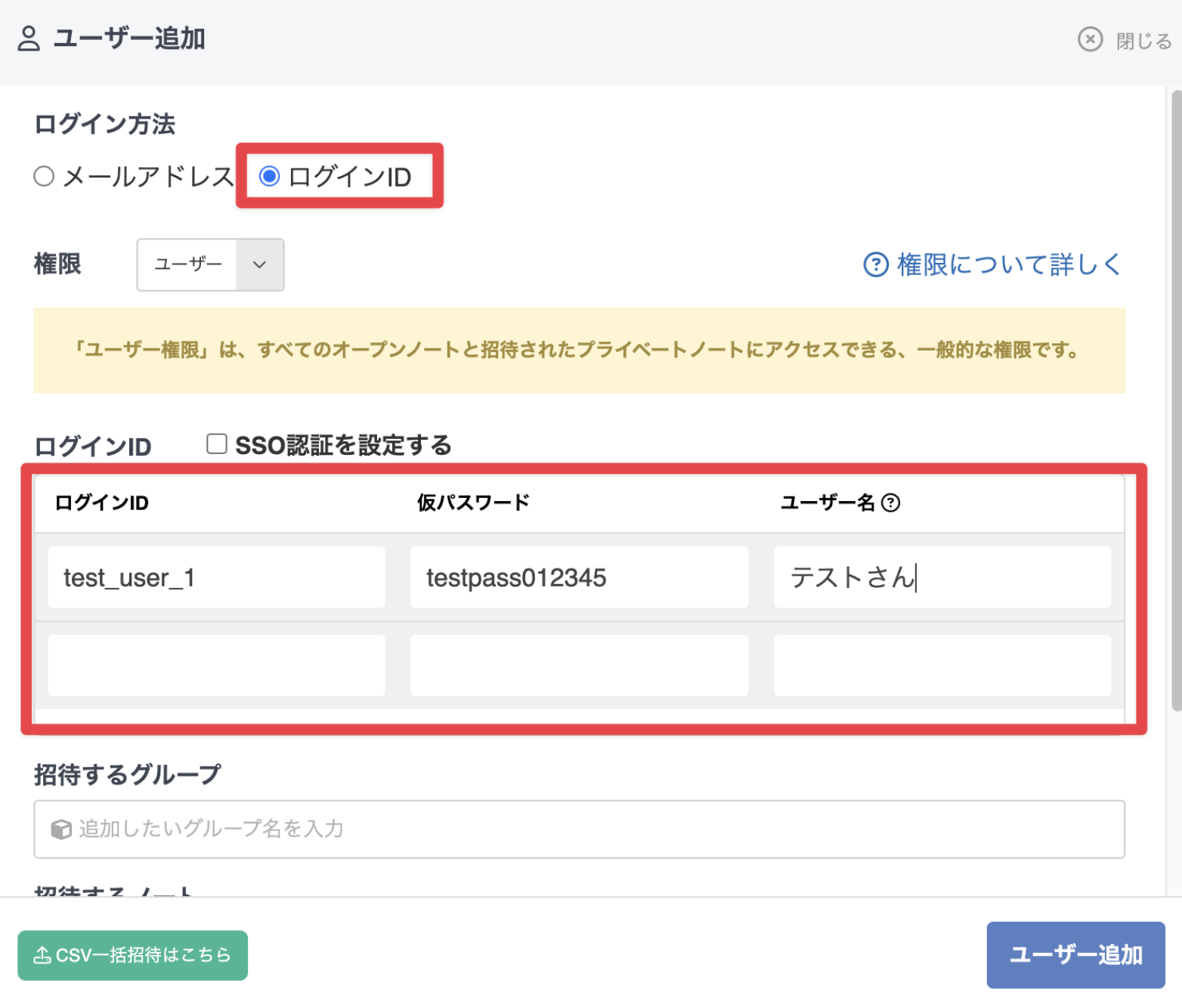 ユーザーを一括招待/登録する(CSVフォーマット)