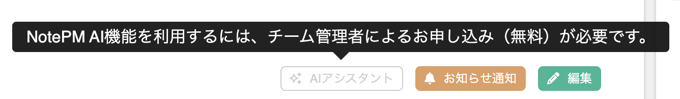 利用をご希望の場合はお申し込みが必要です。詳しくは「NotePM AI機能 β版」をご確認ください。