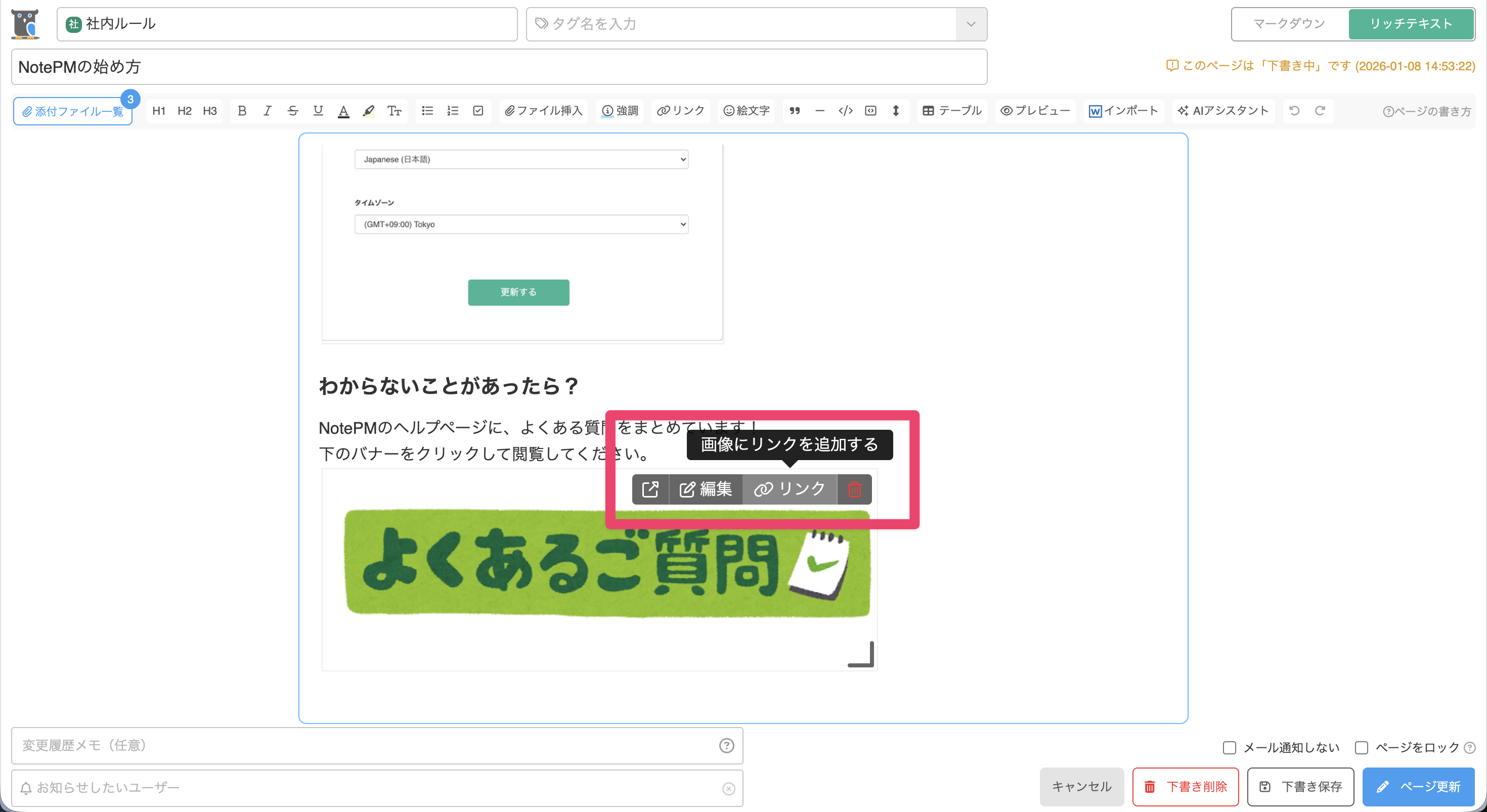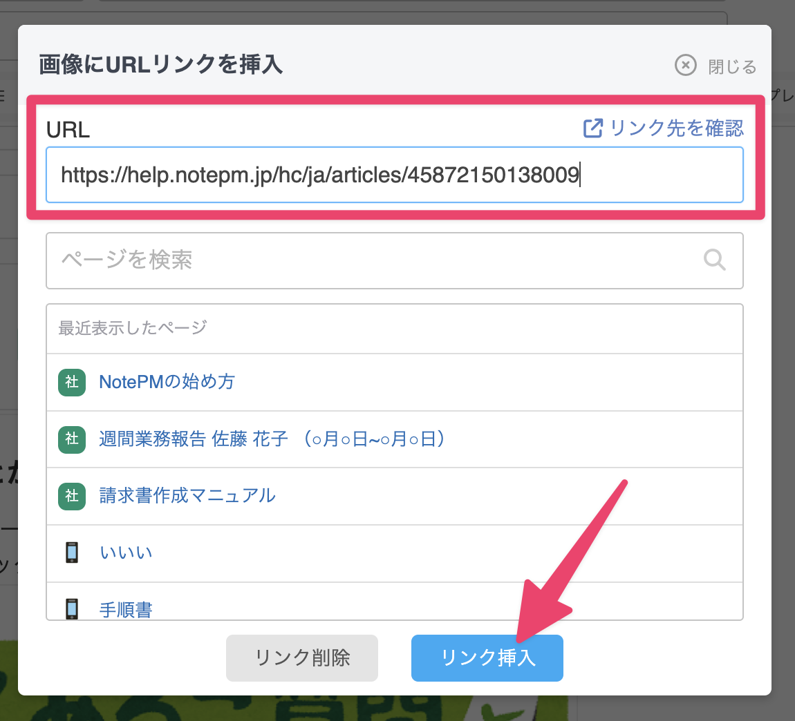 NotePM内のページやファイルを検索して画像にリンクしたり、