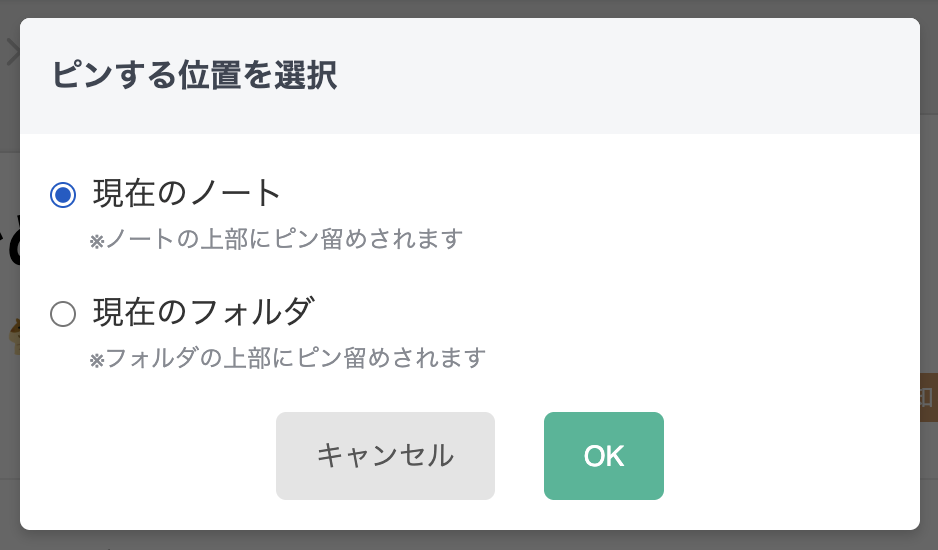 ピンする場所を、「ノート」か「フォルダ」か選択できるようになりました!