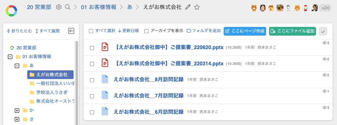 訪問記録や提案資料をお客様ごとのフォルダに整理する運用方法です。