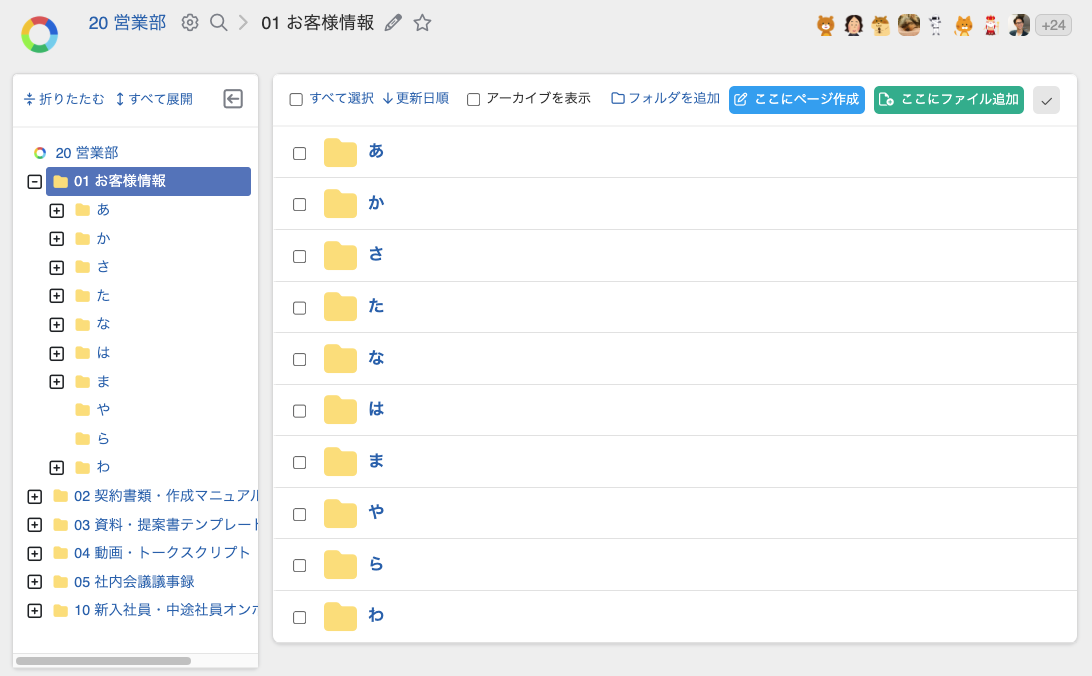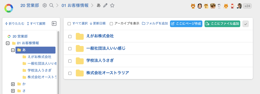 ・顧客ごとのフォルダが増えた場合は、五十音順のフォルダに分類すると整理しやすいです。