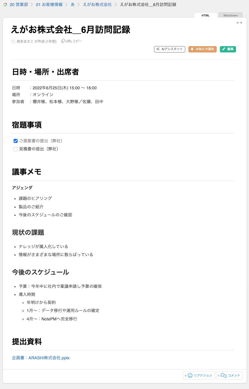 ・関連ファイルをNotePMに集約し、常に最新版へアクセスできる環境を作りましょう。
