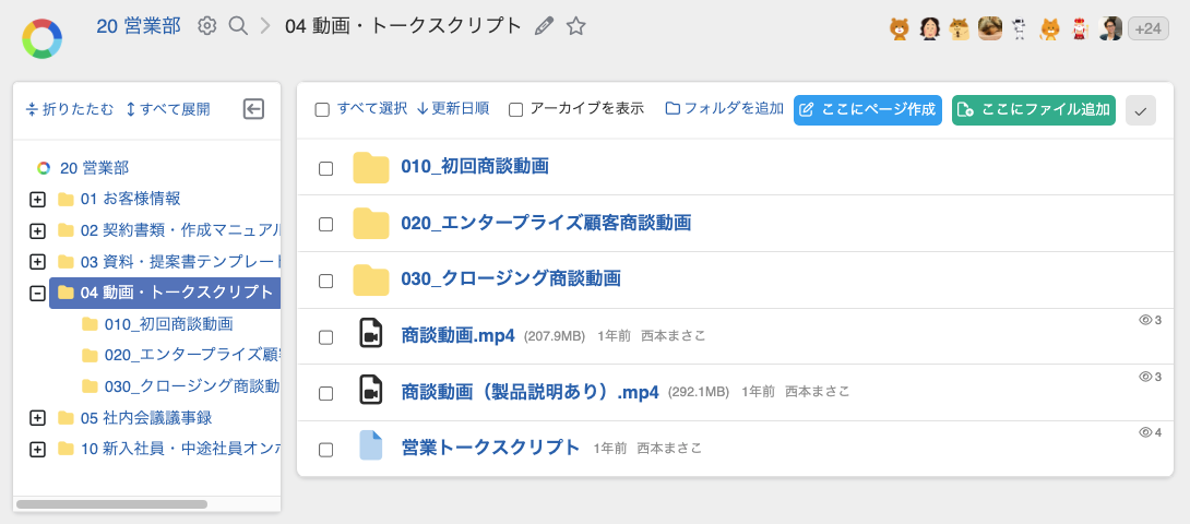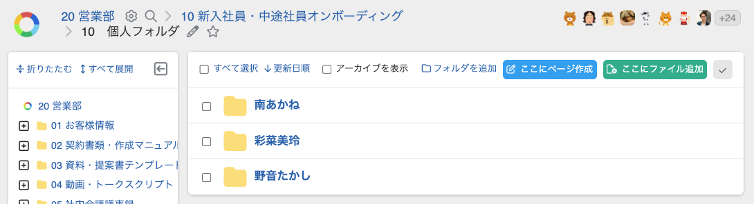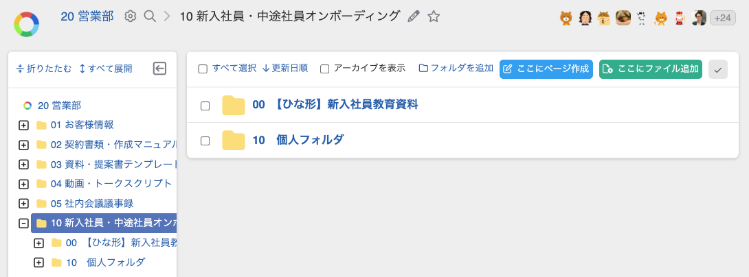 ・新入社員ごとにフォルダを分けることで、研修の進捗を誰もが把握できるようになります。