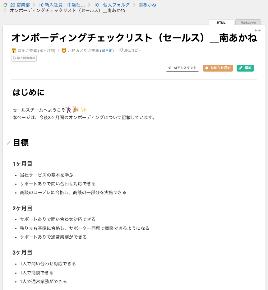 ・完了した項目にチェックを入れるだけで、新人オンボーディングの進捗がひと目で確認できるようになります!