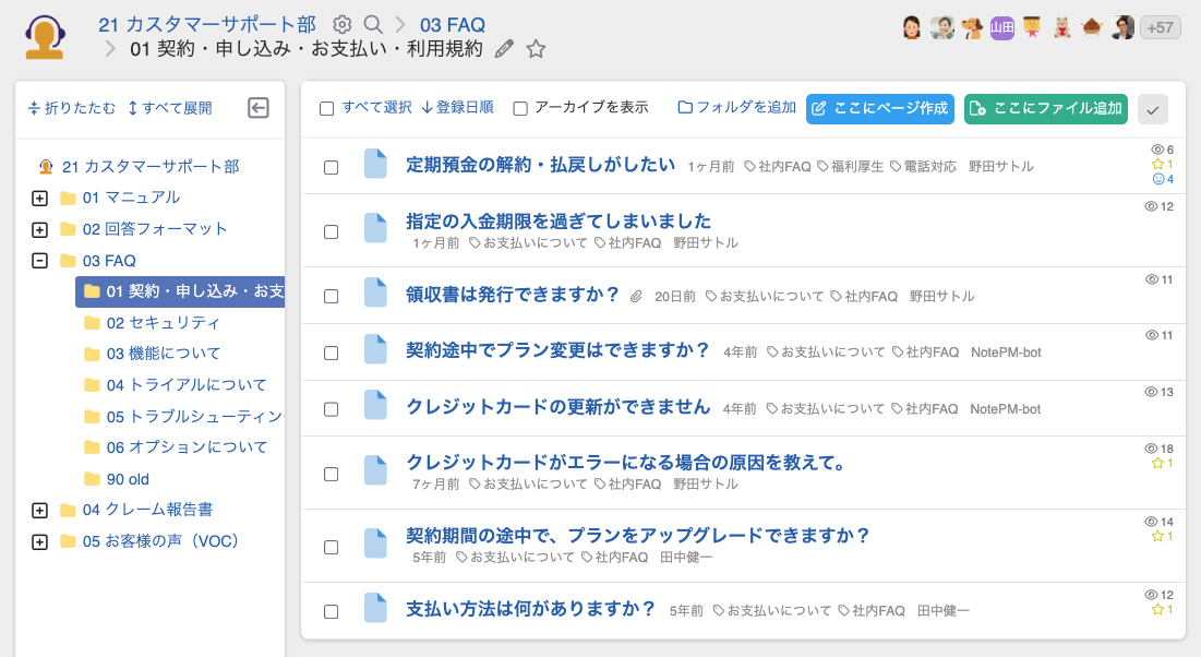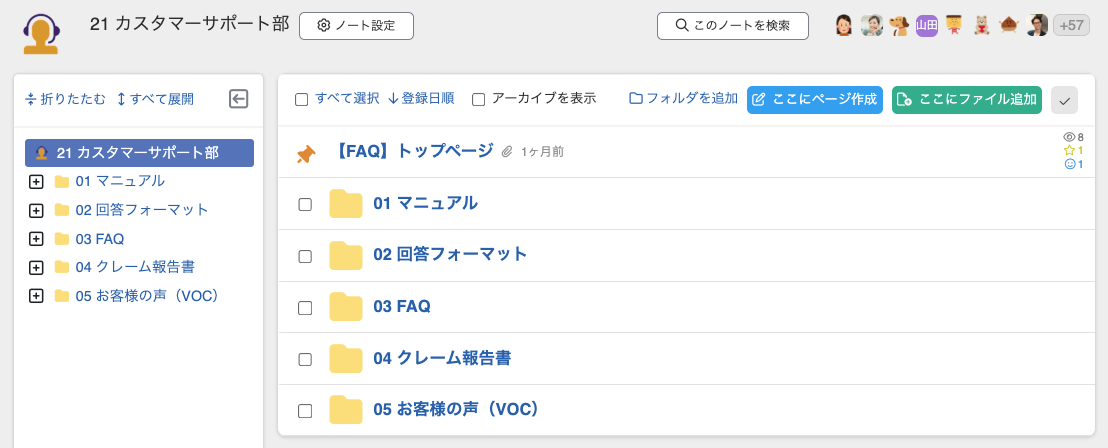 ・質問のカテゴリごとにフォルダを作成して分類し、迷わず目的の情報へたどり着けるようにしましょう。