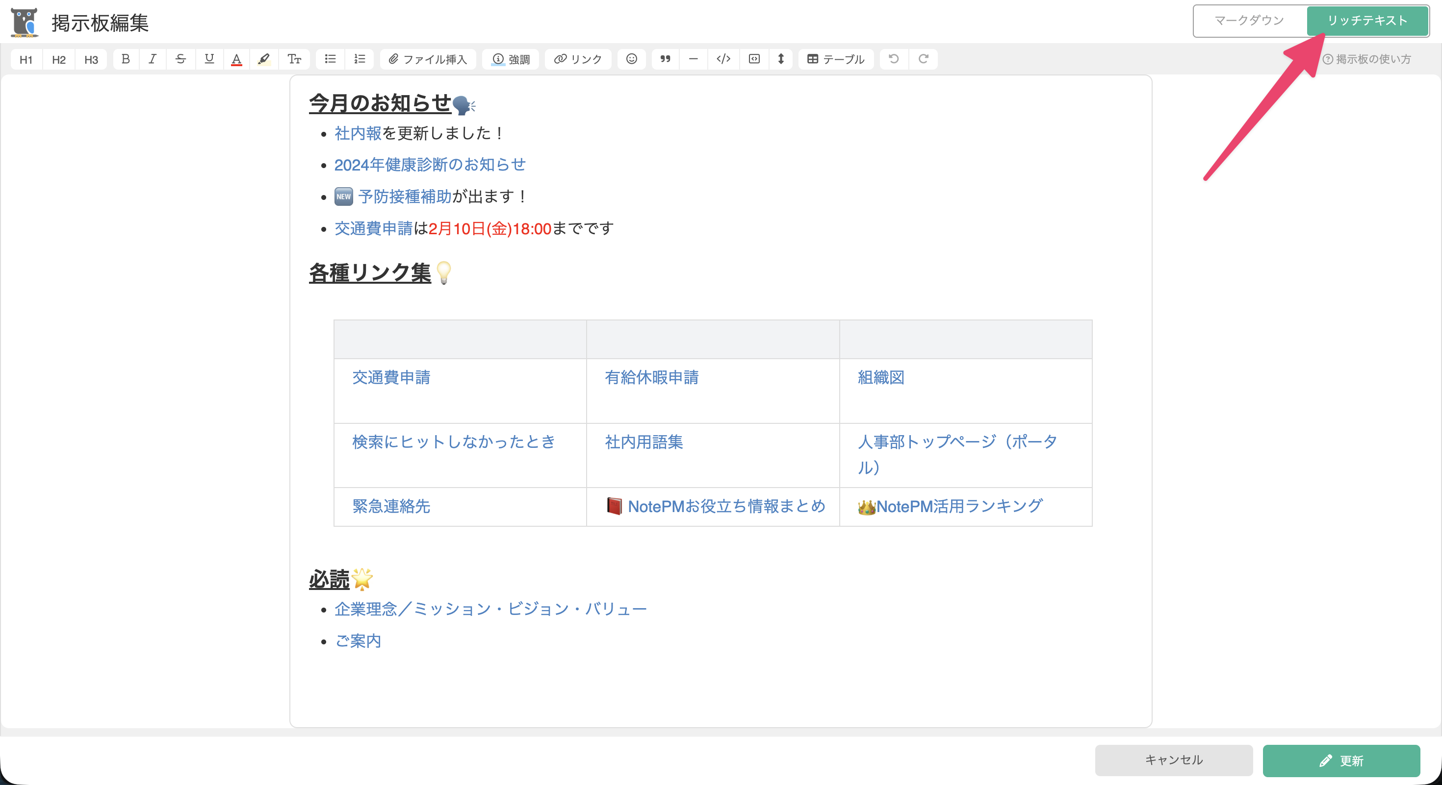 掲示板をリッチテキストエディタで編集できるようになりました!