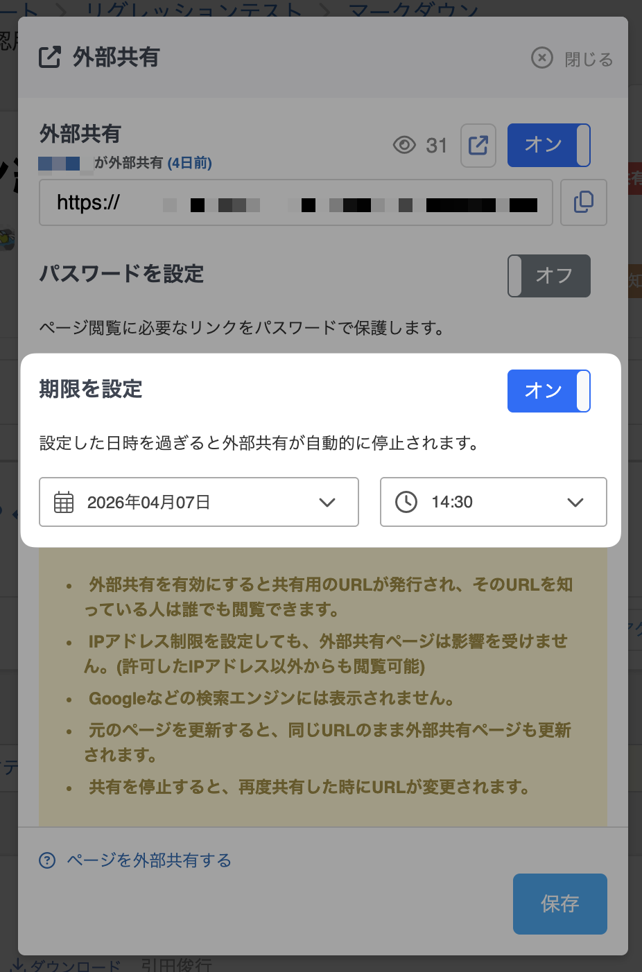 設定した日時を過ぎると外部共有が自動的に停止されます。