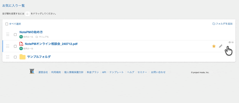 お気に入りにしたページ・ファイル・フォルダ名を変更できるようになりました!