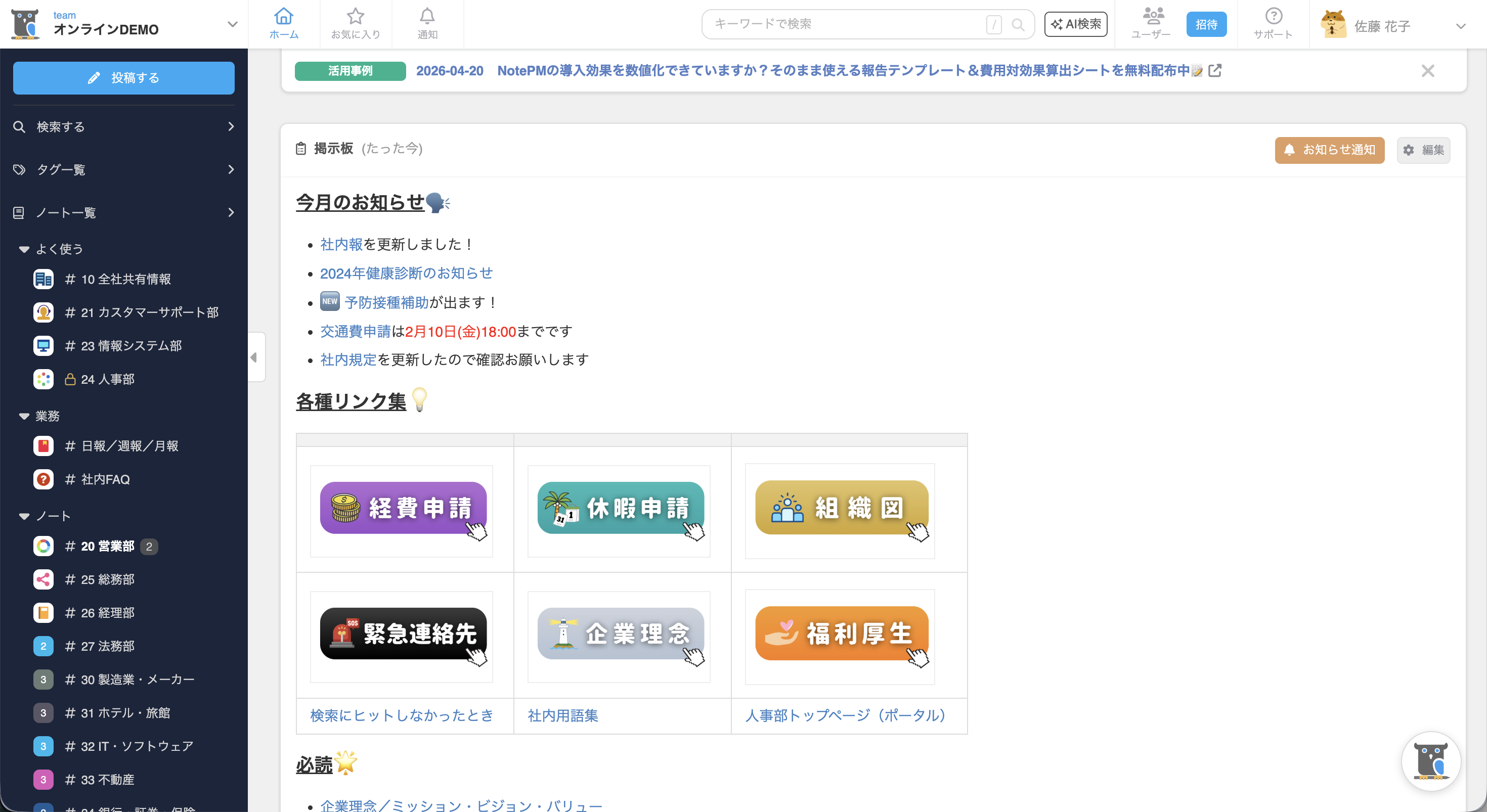 NotePMは情報の保管庫から、直感的に使える「社内のポータルサイト」へと進化します。